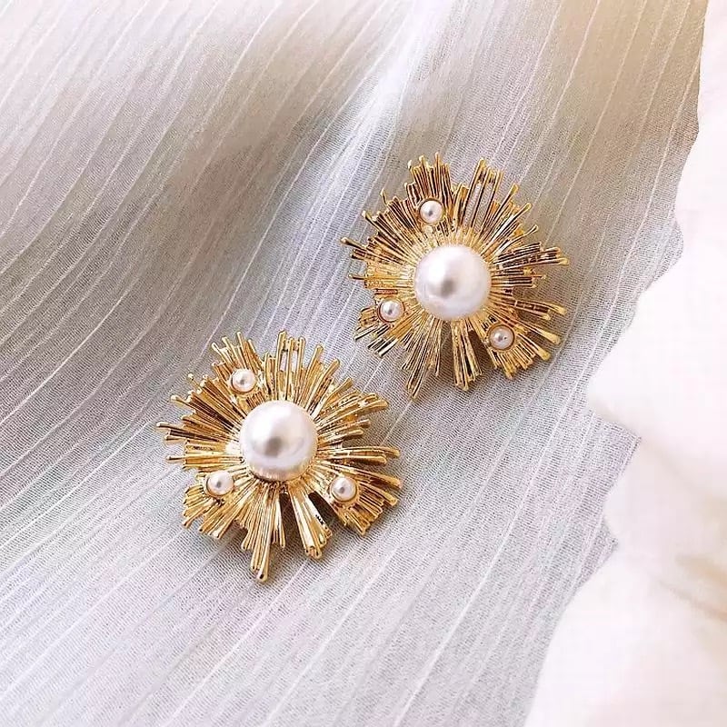 送料無料【予約商品】 (01072) ゴールド 大きめ パール 結婚式 プレ花嫁 ピアス お洒落