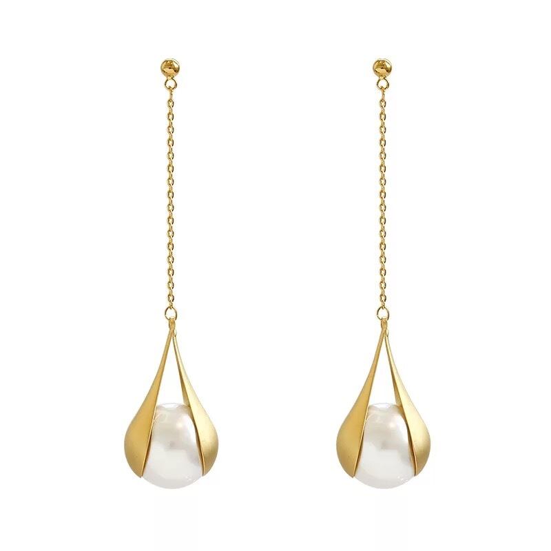 送料無料【予約商品】 (01074) ゴールド 大きめ パール 揺れる 結婚式 プレ花嫁 ピアス お洒落
