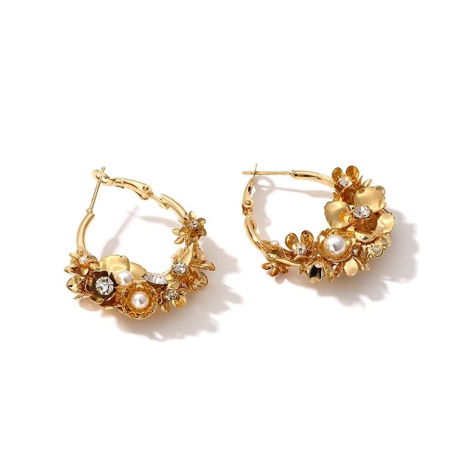 ゴールドのフラワーが大人可愛いピアスです♡