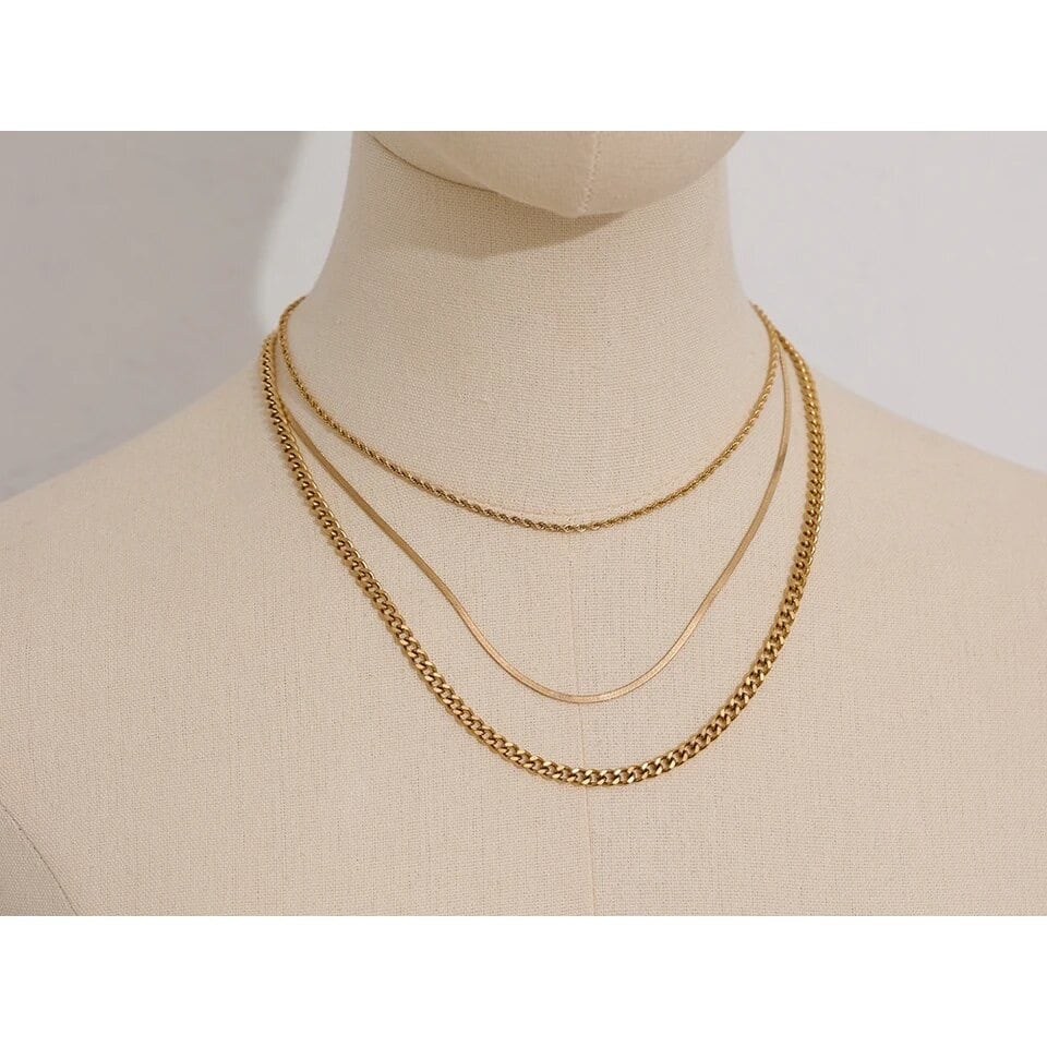 ◾️ 3連のステンレス製セットネックレスです。